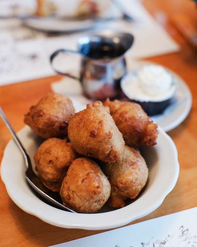 "The 1761 Old Mill is a picturesque place that serves good basic food with very friendly service. They serve fritters, rolls and sticky buns with all meals. The atmosphere is a nice casual setting in this large old mill. Plus, you can buy more sticky buns to take home or to give to someone special."